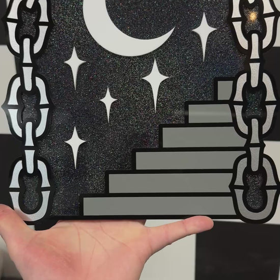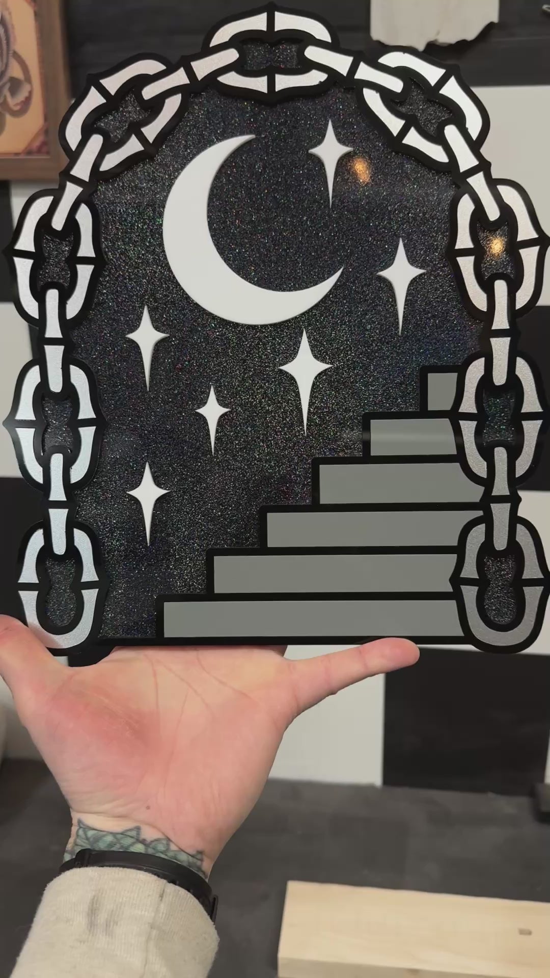 This piece is technically a part of my test run collection, though I don’t see any changes being made down the road. When it becomes a made-to-order item I may add a layer to the back as the glitter acrylic is translucent.