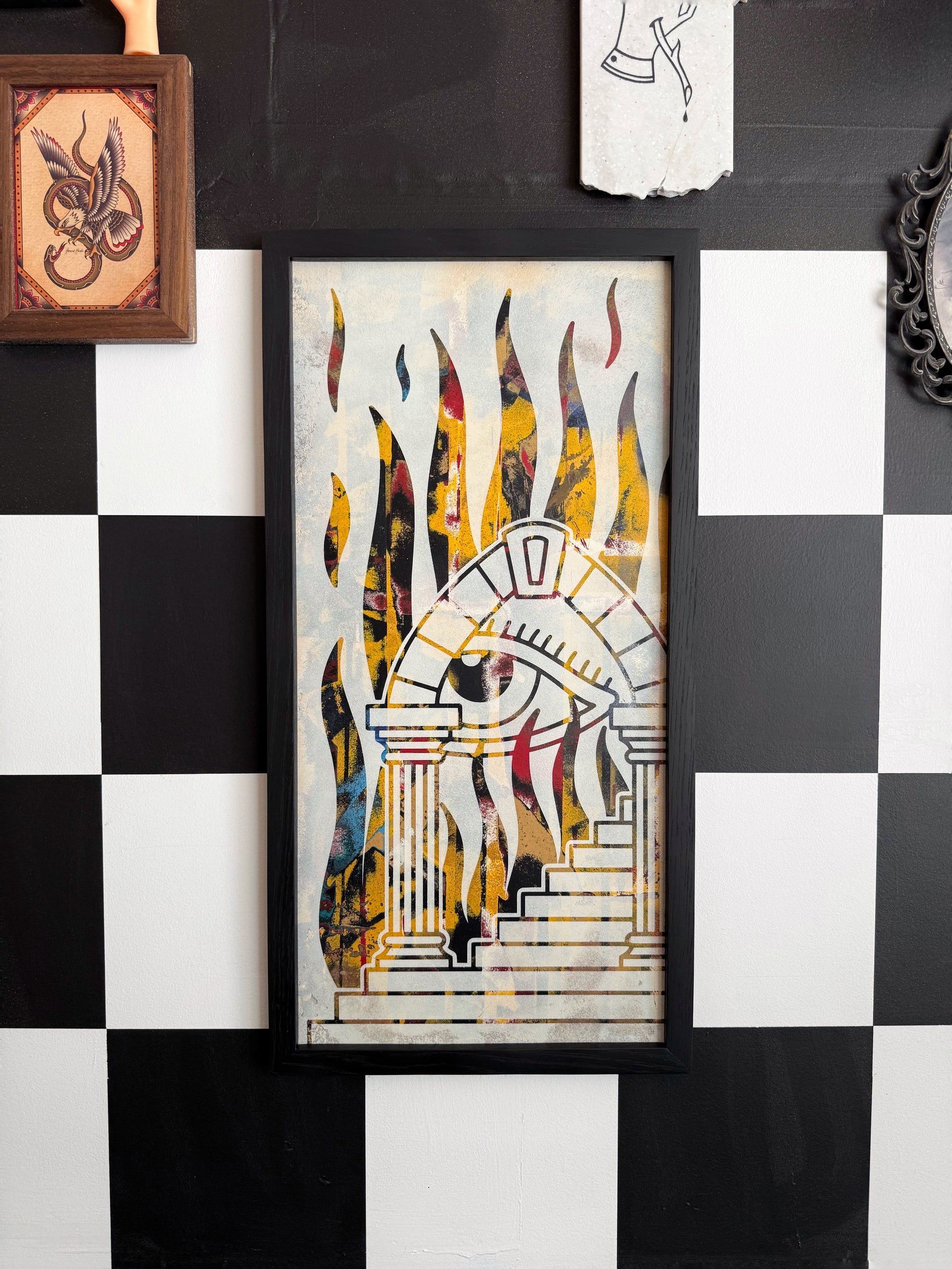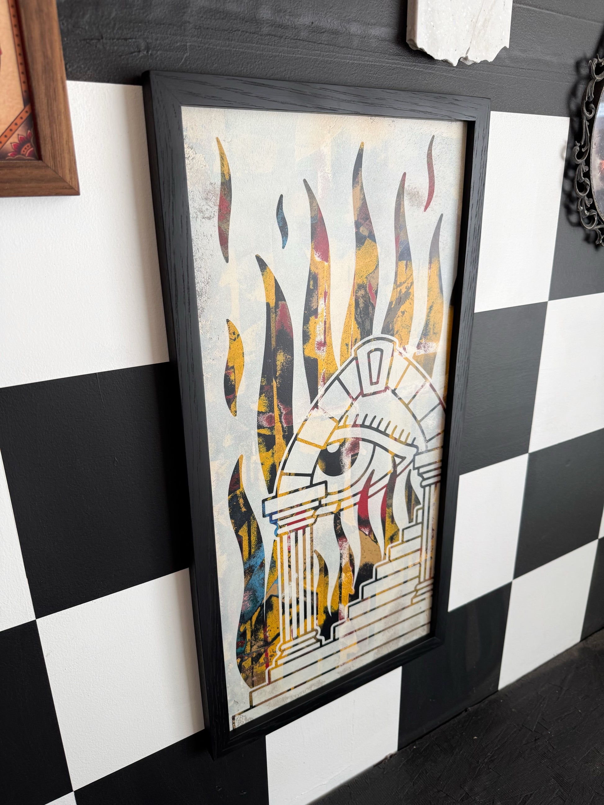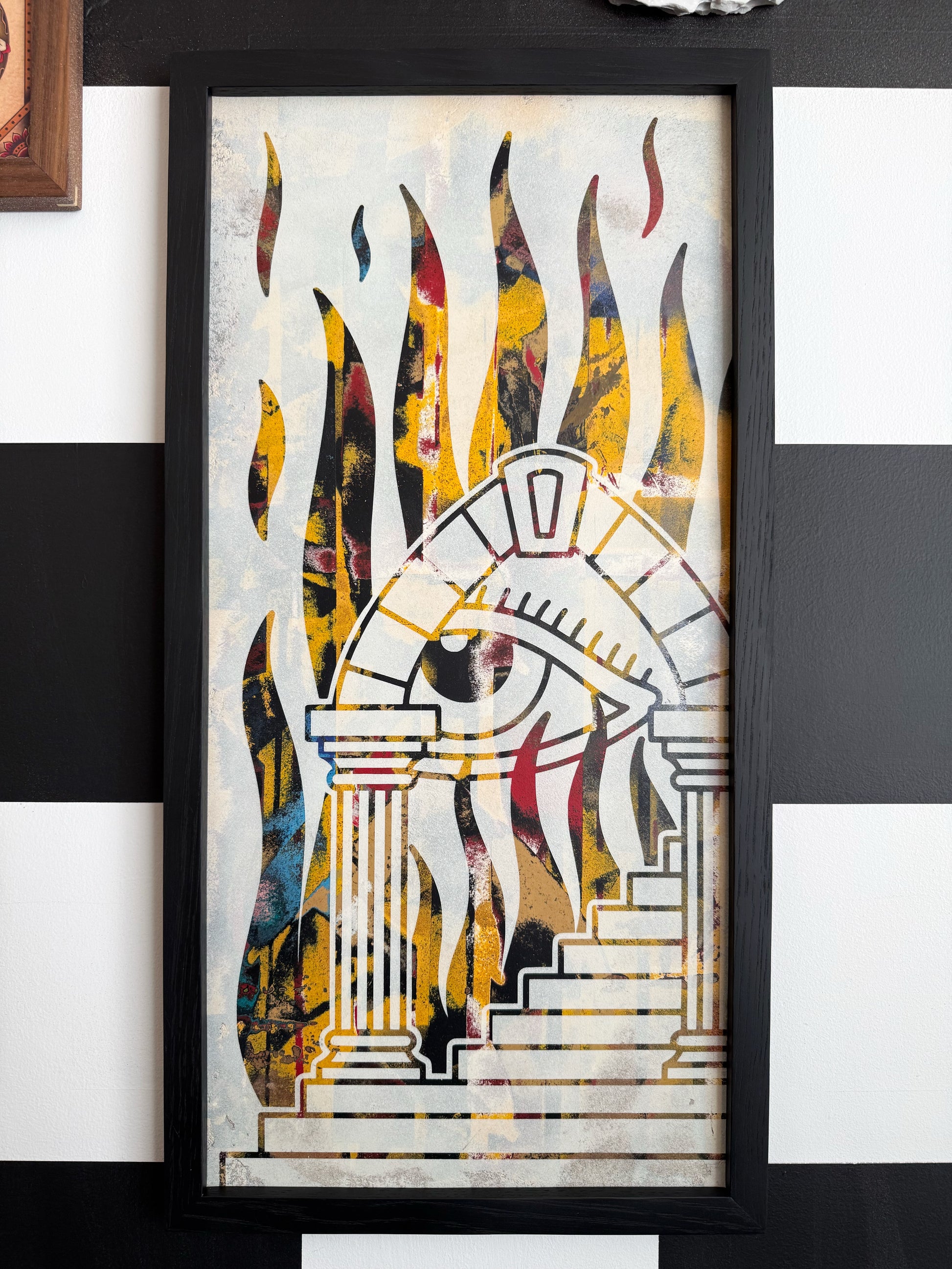 This piece measures 11.25”w by 22”t, ready to hang on a drywall screw or a nail.