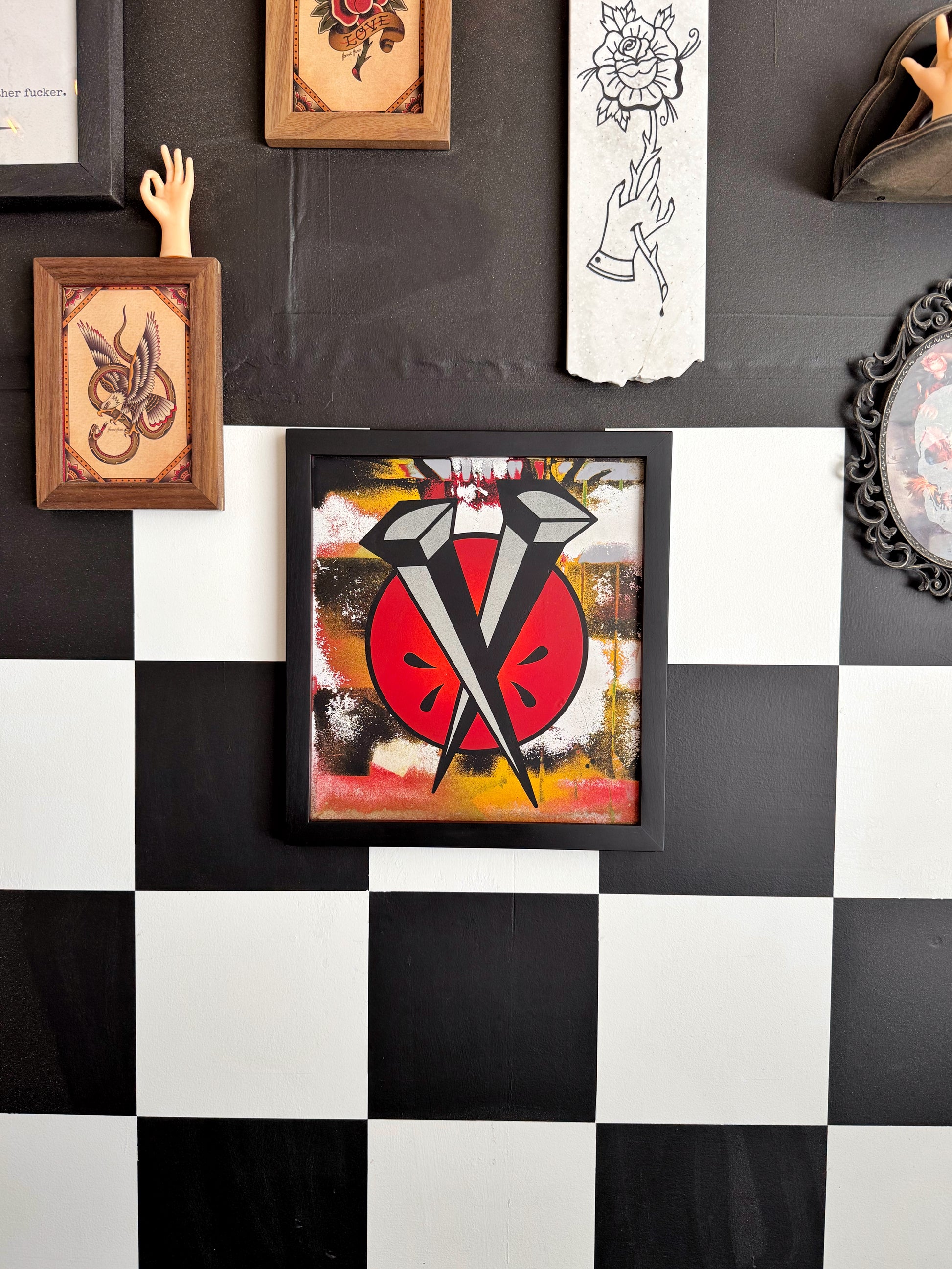 Tough as Nails has always been a staple in tattooing, usually used as filler piece. This piece would help fill in your walls perfectly!